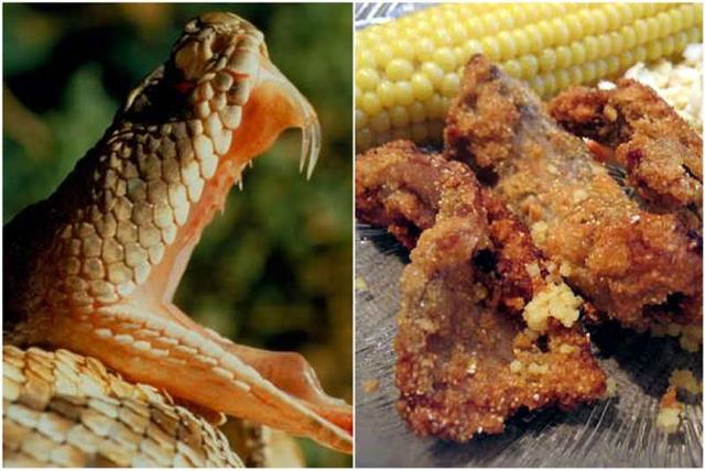 Não é preciso olhar duas vezes para saber que esses seres rastejantes são perfeitamente capazes de te matar. Com um arsenal que vai de presas similares a seringas até uma grande força constritora, passando por mandíbulas poderosíssimas e eventuais esguichos de veneno, as cobras são especialistas na arte de ferrar suas vítimas. Mas nada disso impede os chineses de transformá-las em uma bela fritada ou uma saborosa sopa, tudo acompanhado por uma dose de vinho de serpente.