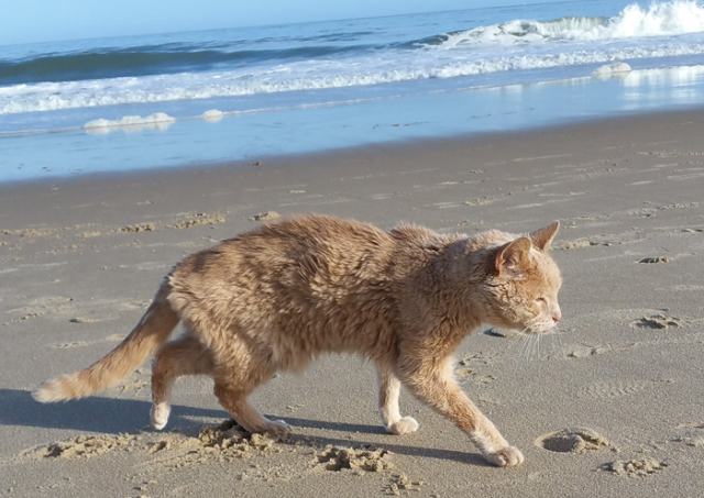 A praia foi um dos lugares favoritos do velho gatão, que brinca na areia como se fosse uma criança